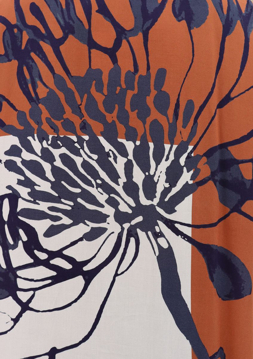 Allegra is effortlessly stunning and designed for easy, throw on and go. Inky florals layer over a two-toned background of beige and golden hues.