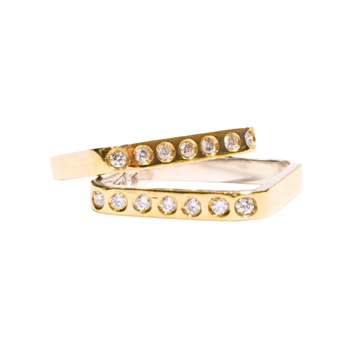 3 Prong Set Flat Tuboga Spring Cuff - Gold