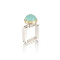 Aqua Chalcedony Cabochon Square Ring - 12mm