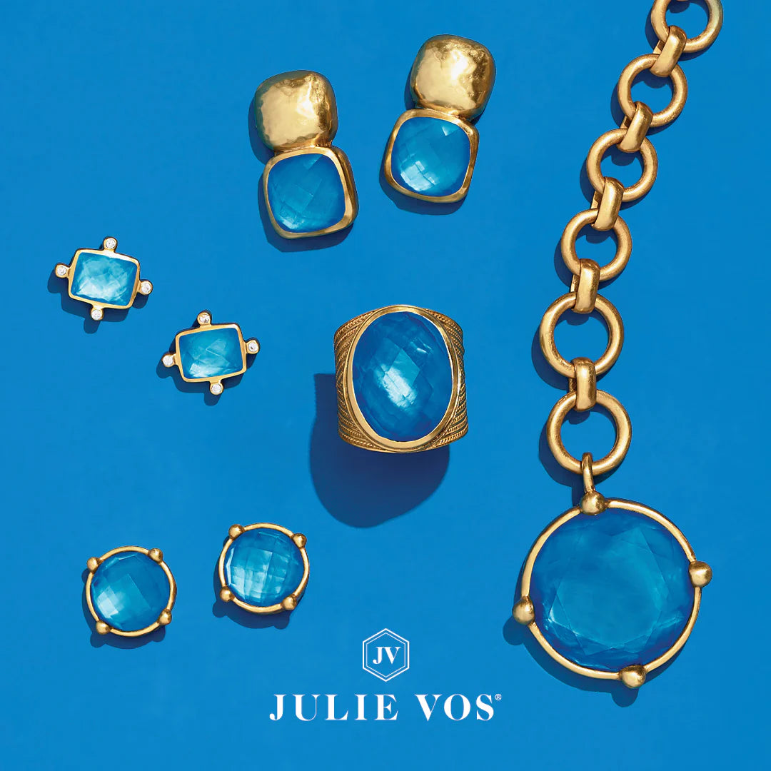 Inspired by the beauty of New York City and the romance of travel, Julie Vos designs timeless, elegant jewelry known for its rich color, luminous gold tones, and sculptural details. Each piece is crafted with 24K gold over nickel-free brass and set with semi-precious stones, imported glass, and pearls—creating wearable luxury that elevates every look.