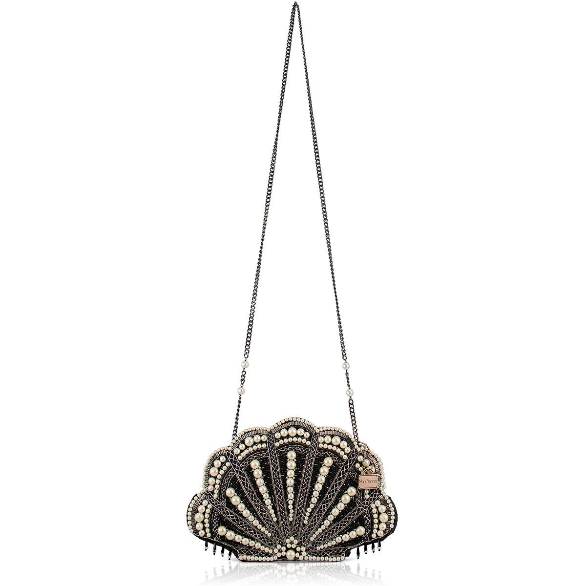 Make waves with this pearl studded beauty that’s straight out of a mermaid’s closet! With its shimmering shell shape and radiant beadwork, this purse is ready to glam up your seaside strolls, soirées, and everything in between. Ocean chic? Absolutely.