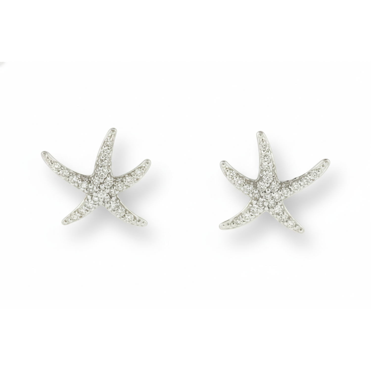 These enchanting earrings are miniature constellations, offering a delicate echo of the sea's boundless magic. Crafted with luminous precision in White Gold, each stud takes the beloved form of a starfish, a timeless emblem of guidance, inspiration, and the mysteries of the deep.