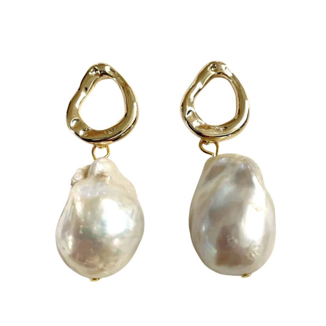 Baroque Pearl Earring on Gold Teardrop Setting