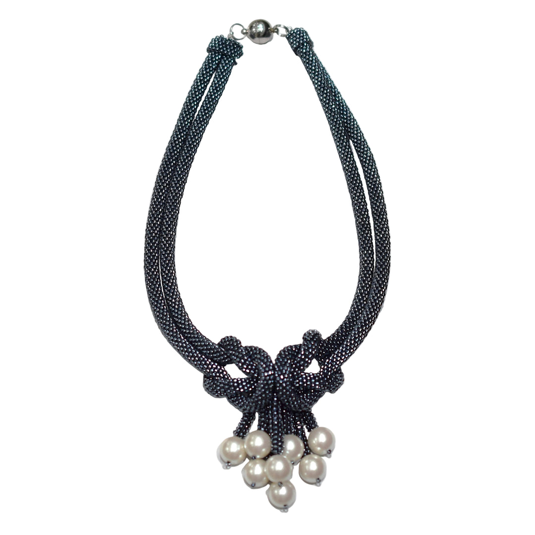 Midnight Crystal Beaded Necklace with Pearl Center