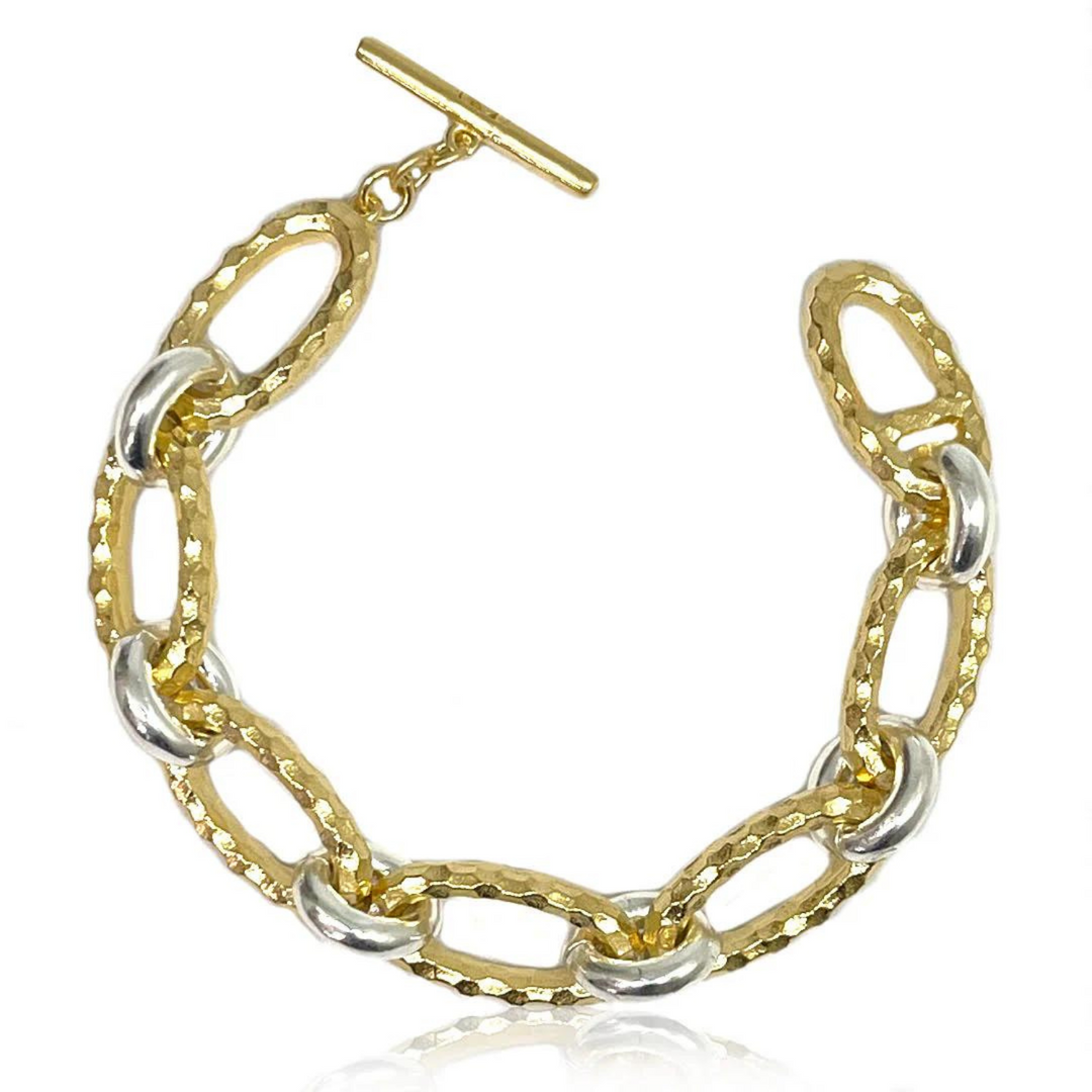 Gold Two-Tone Ravelle Hammered Chain Bracelet 7.5