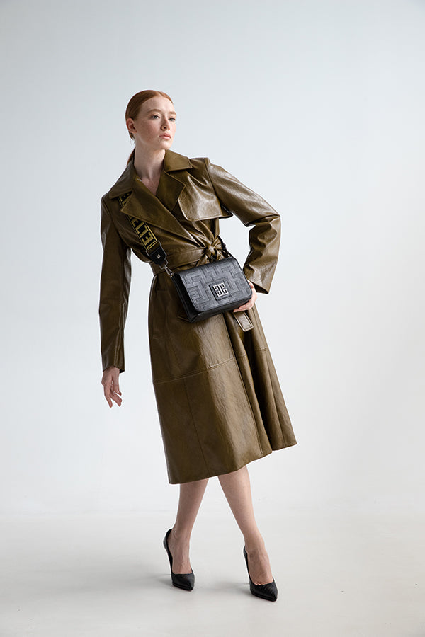 The OURANOS Embossed Leather Crossbody Bag in Black embodies bold sophistication and timeless craftsmanship. Handcrafted in Greece from premium embossed leather, its deep black finish highlights the intricate textures and refined structure.